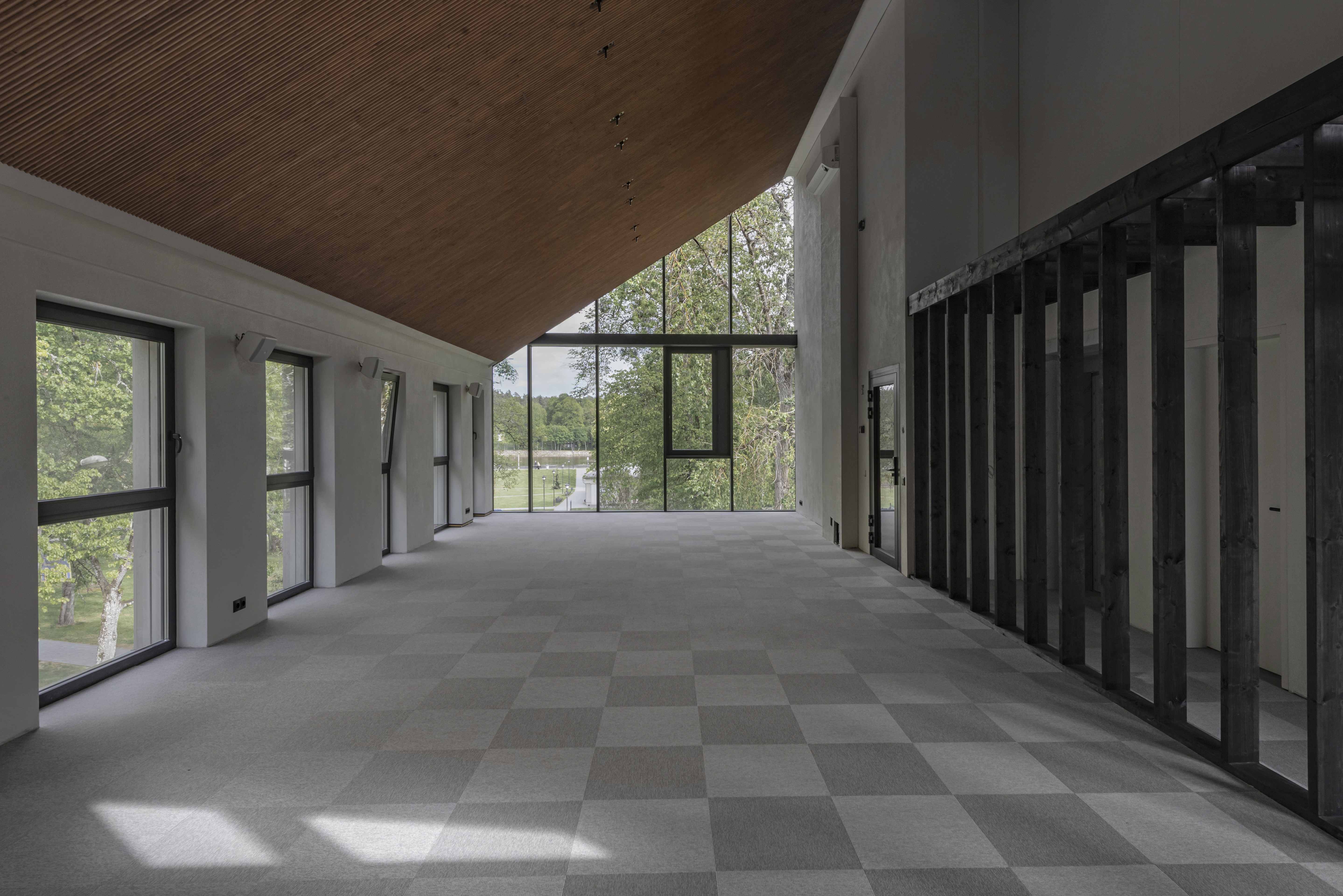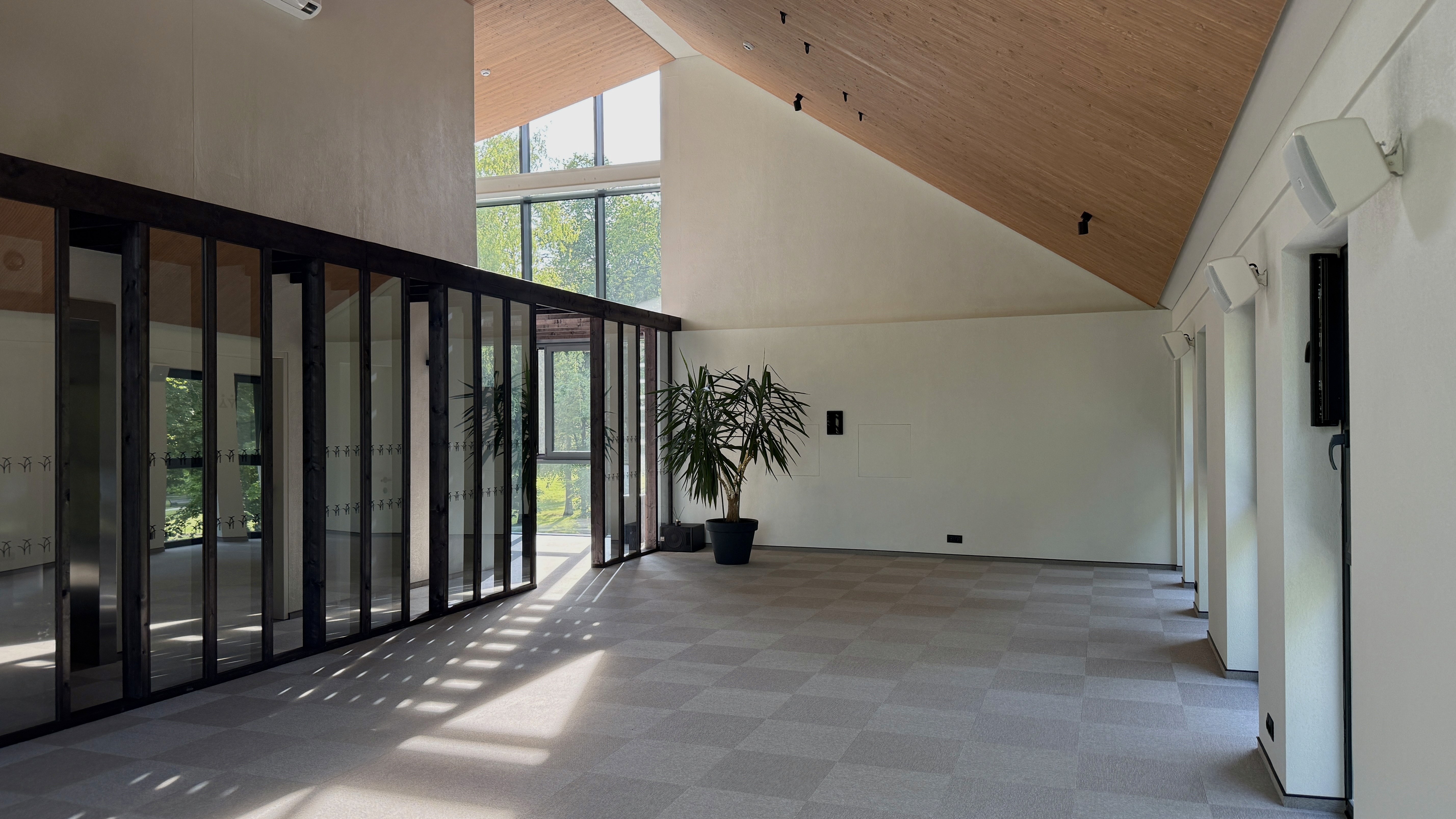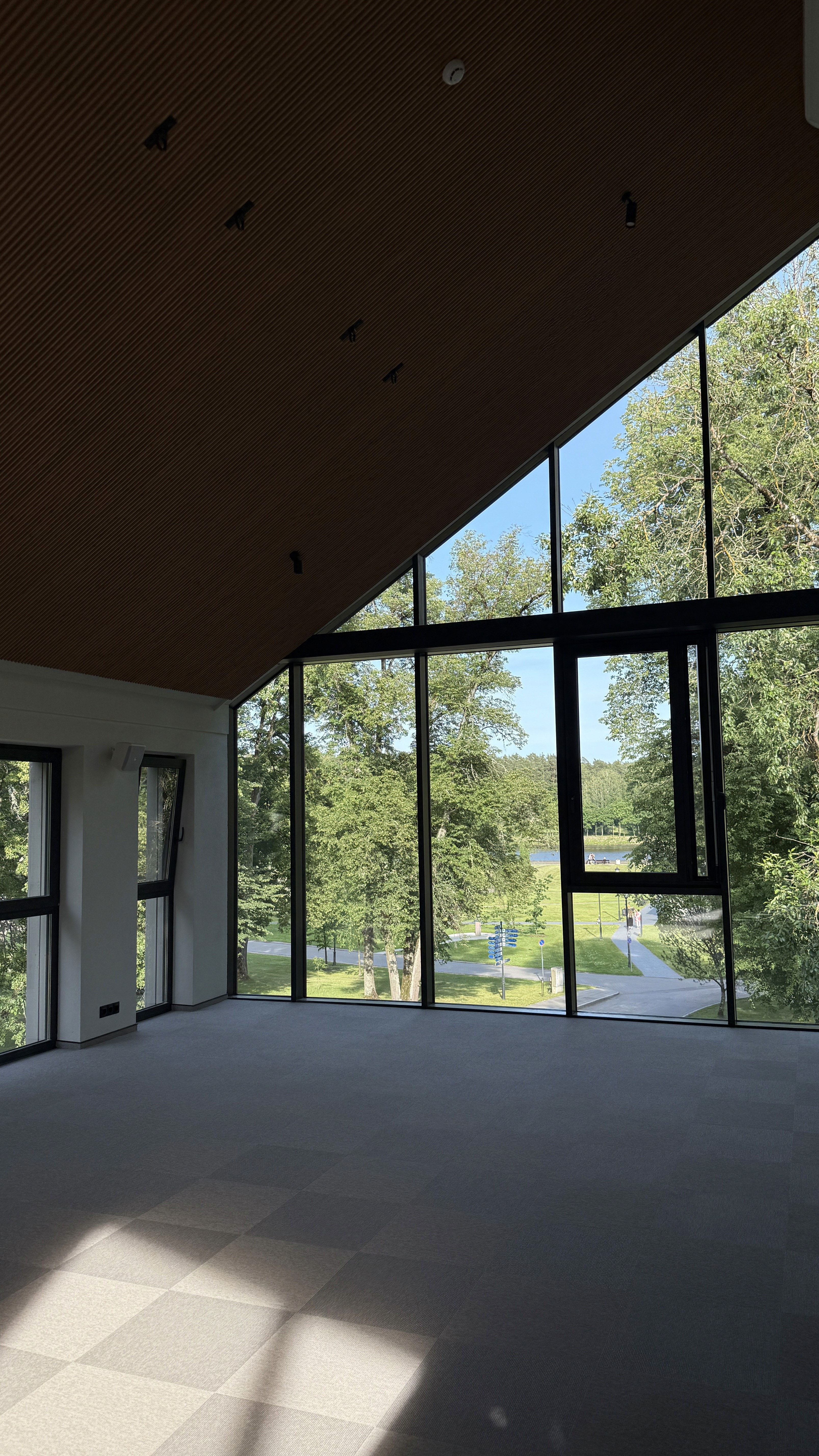 A space for movement and tranquility created for everyone to enjoy a bright and calming environment, tailored for yoga, pilates, meditation, and other wellness practices. The interior features natural motifs and a cozy atmosphere, while the view of the Nemunas River through the windows provides this space with unique serenity and inspiration.